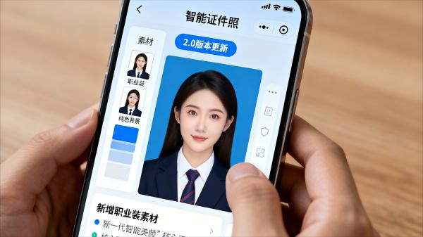 备受用户喜爱的“智能证件照”应用今日迎来2.0版本重大更新。新版本不仅新增了包括职业装、多种纯色背景在内的丰富素材,还引入了新一代智能美颜算法,能够在保证证件照合规性的前提下,对人像进行自然、精细的美化处理。
